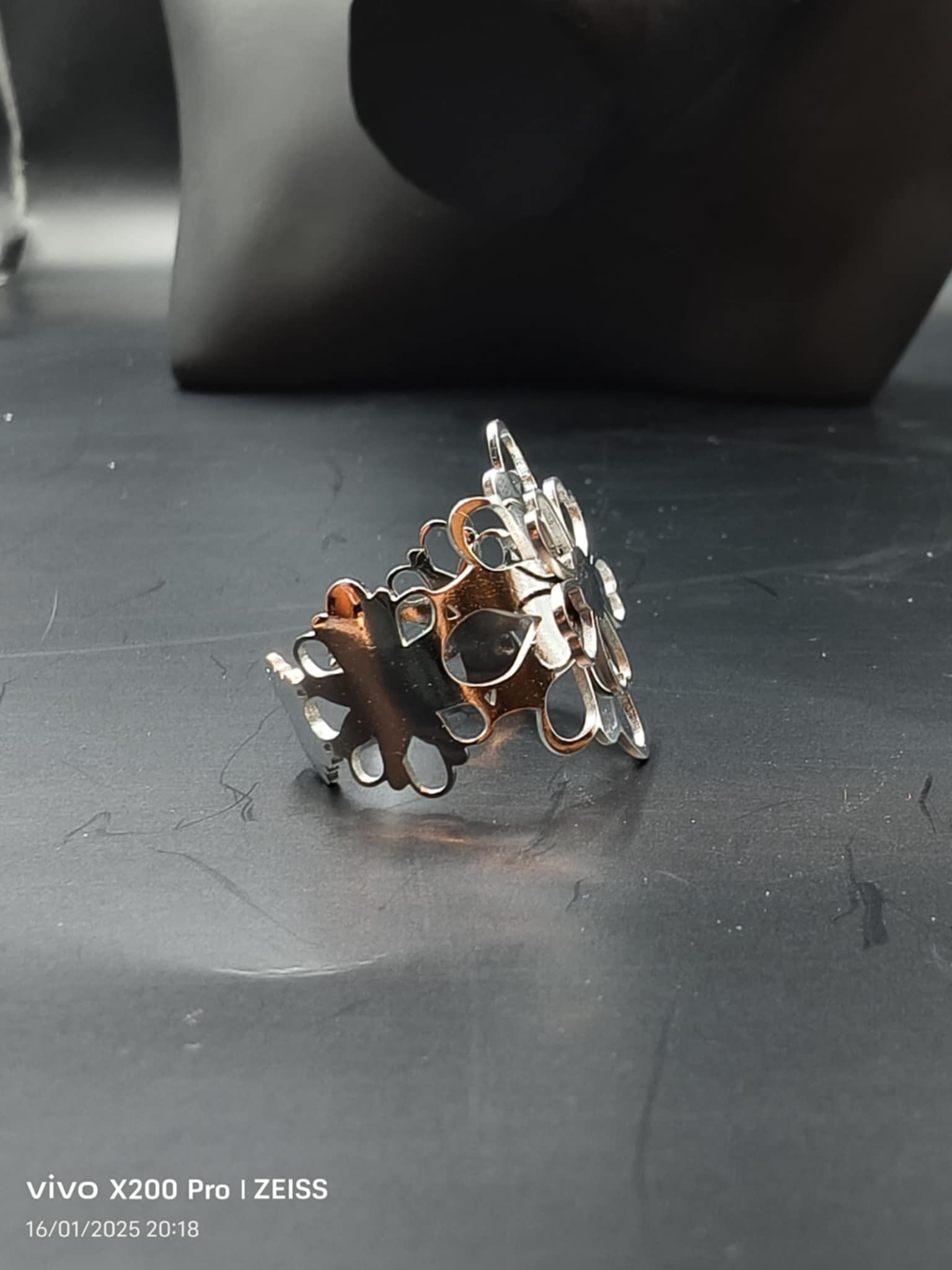 Bijoux Bague Dorée et argentée Large Fleurs En Couches.