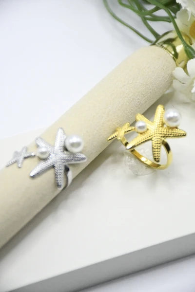 Bagues étoile de mer perlé en acier inoxydable ajustable