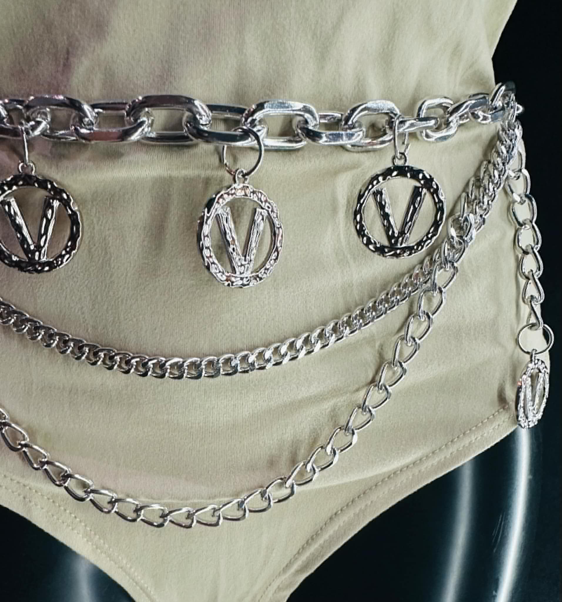 Ceinture bijoux 2 variantes taille du 34 au 48 longue chaine avec bijoux au bout.