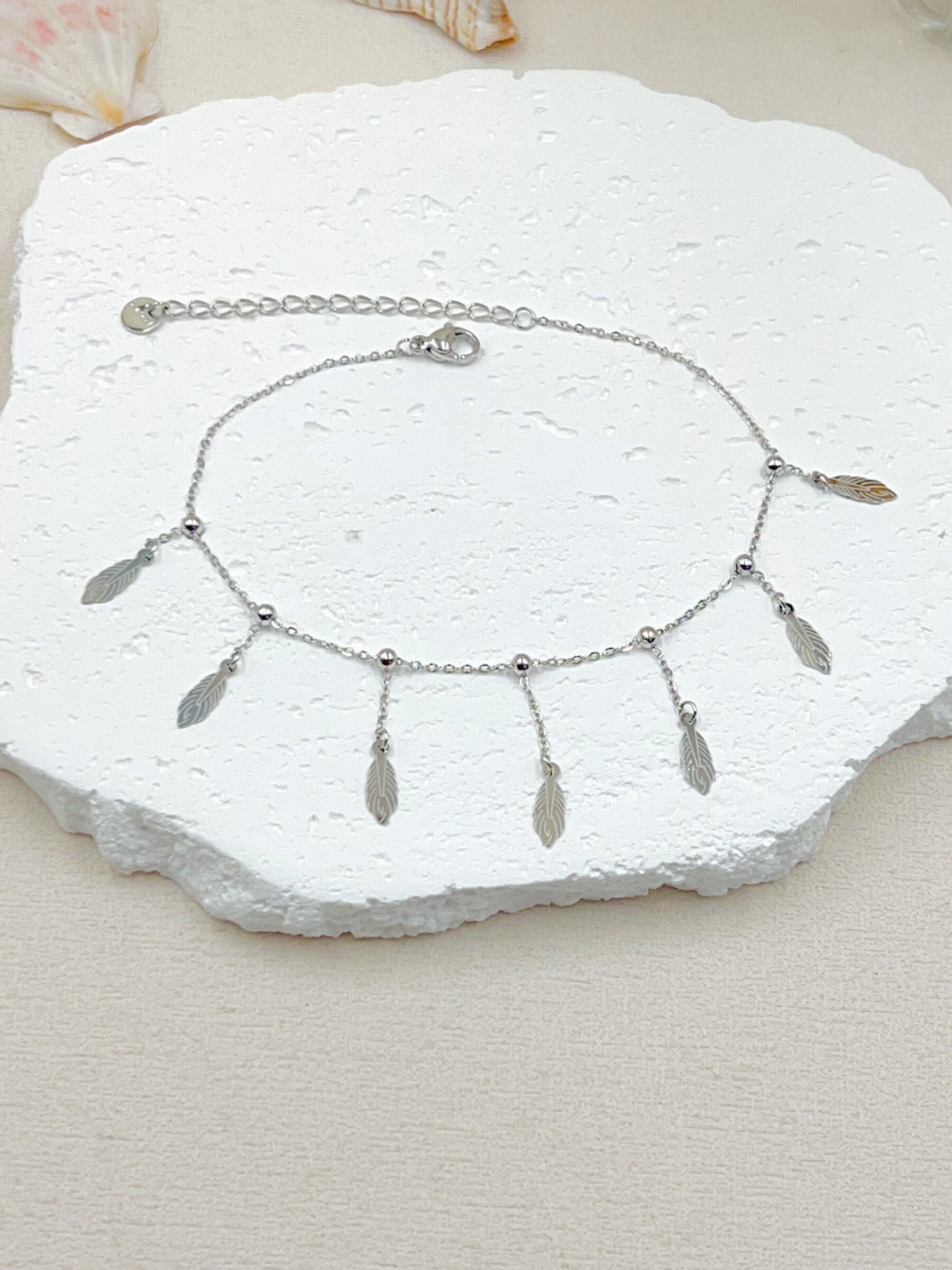 CHAINE DE CHEVILLE FEUILLES EN ACIER INOXYDABLE