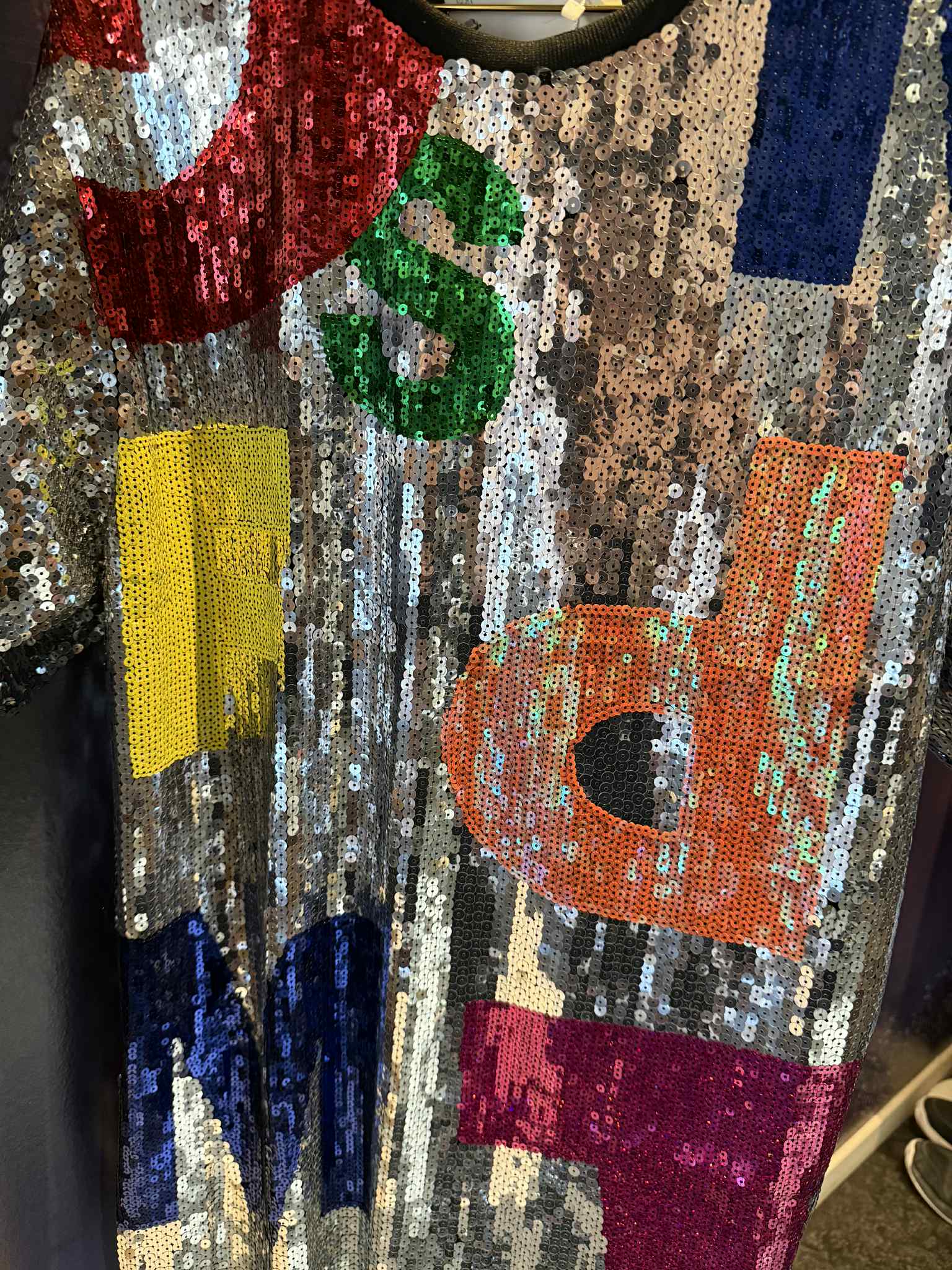 Robe à sequins scintillante, polyester, idéale pour les soirées estivales.