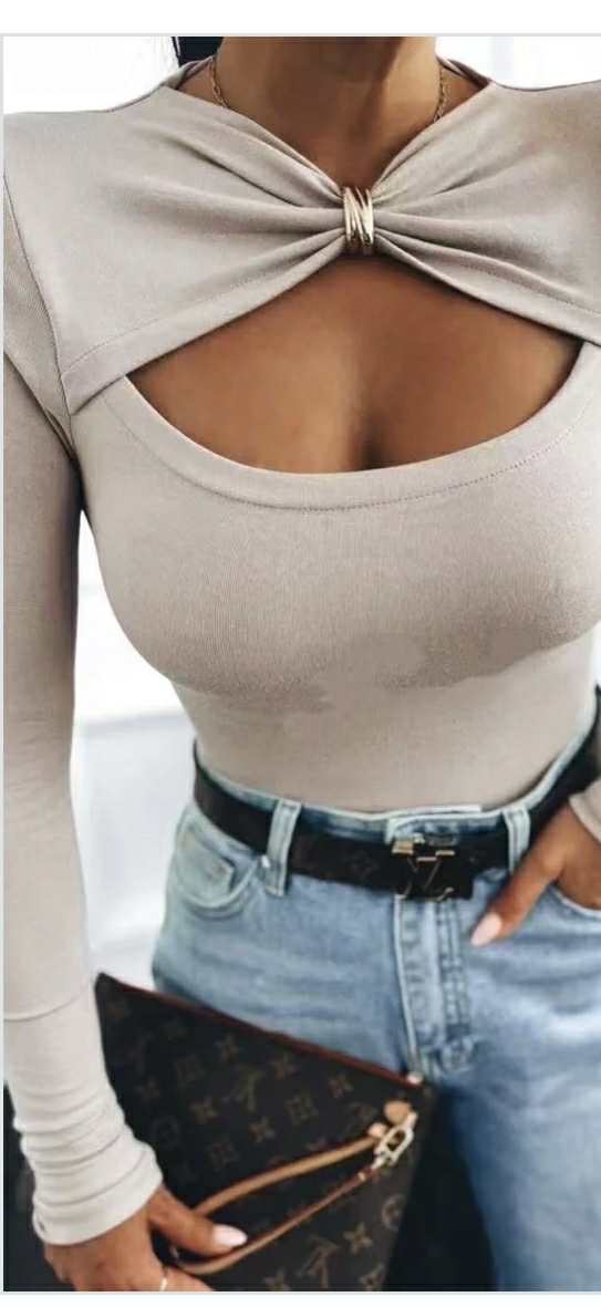 Top manches longues, élégant anneau doré, polyester et élasthanne, idéal pour automne/hiver, fabriqué en Italie.